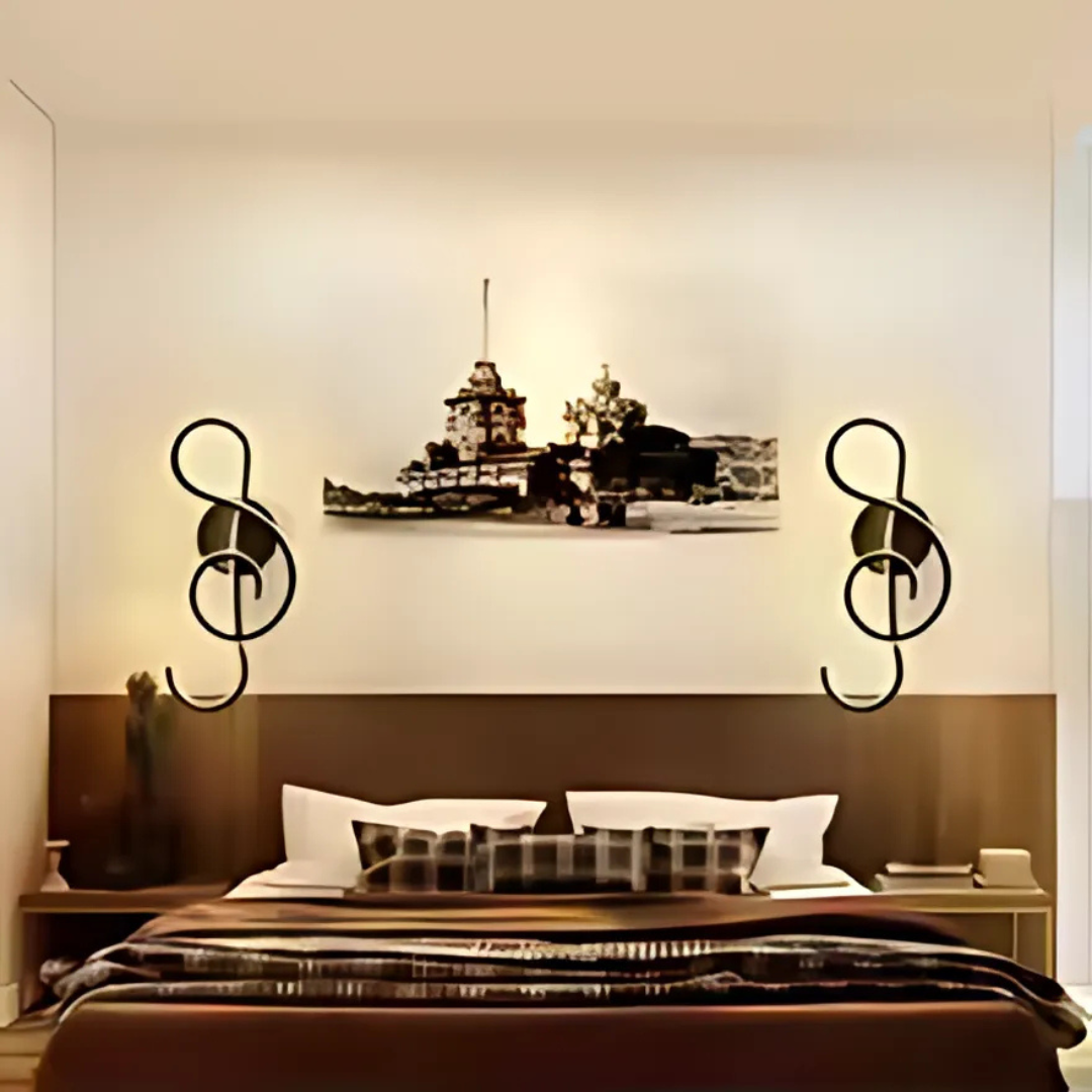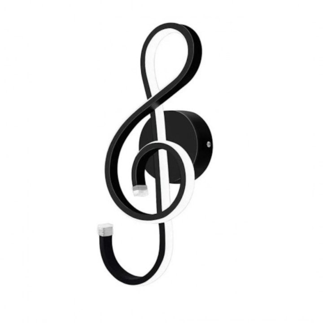 Designul în formă de cheie sol nu este doar estetic, ci poate influența și modul în care lumina este distribuită, creând efecte interesante pe perete. Finisajul negru al metalului îi conferă un aspect robust și elegant, ușor de integrat în diverse stiluri de decor, de la modern la industrial.