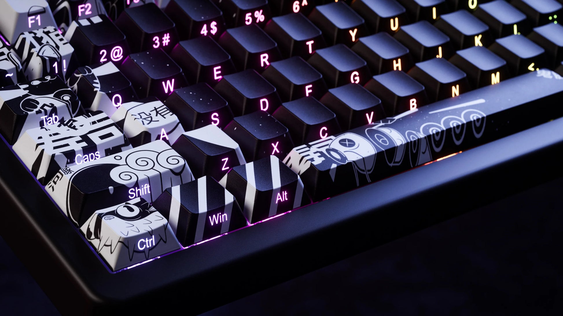 Keycaps PBT Dye-Sub – Cherry Profile cu side legends – Keycaps din PBT durabil, rezistente la uzură, cu legendă aplicată prin sublimare termică. Side legends pentru o estetică curată și iluminare discretă.